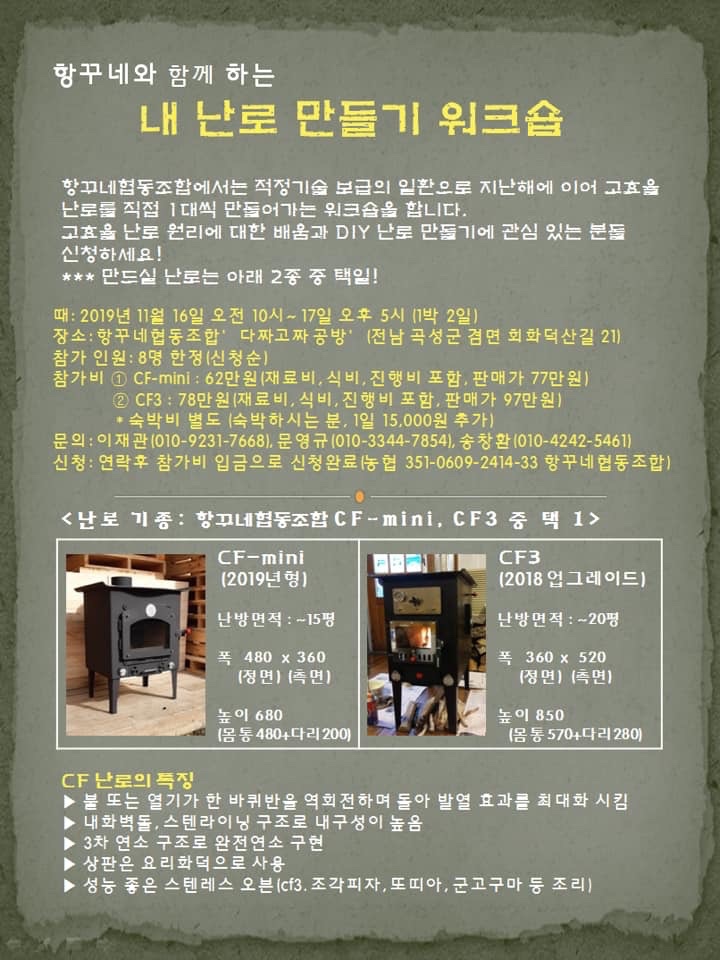 워크숍을 신청하면서 자기 손으로 만든 난로를 진짜 들고가는 거냐고 물어봤더랬는데요.