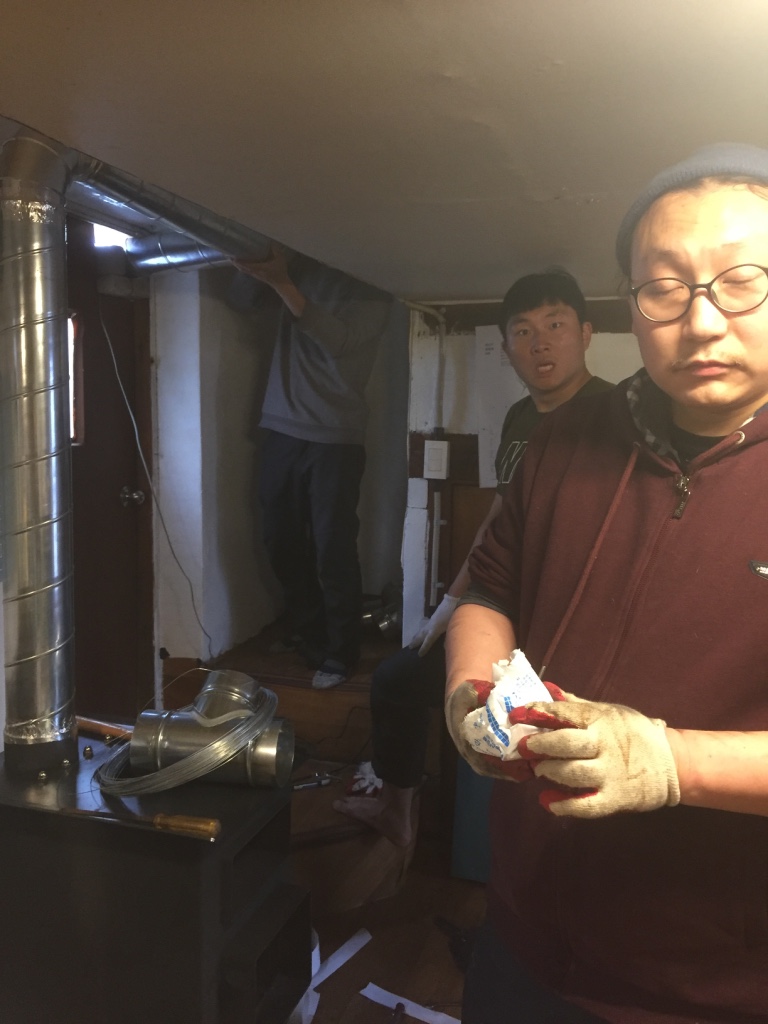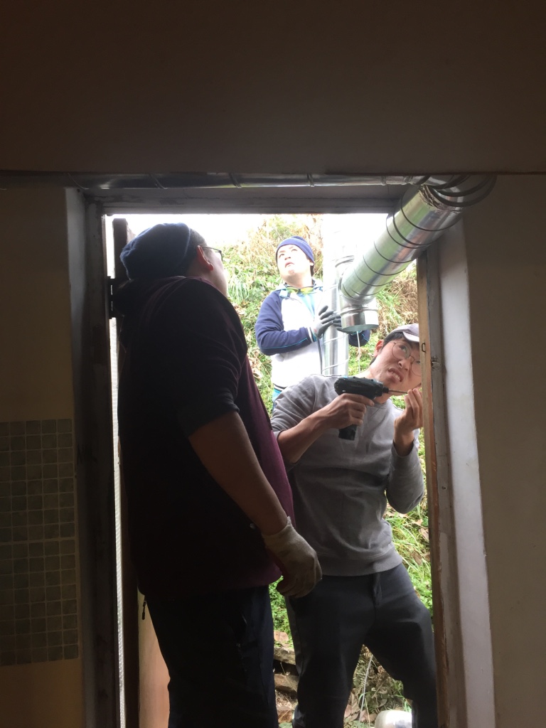 연도를 새지 않게 설치하는 것도 중요한 일이라(?) 소년단 모두 출동.