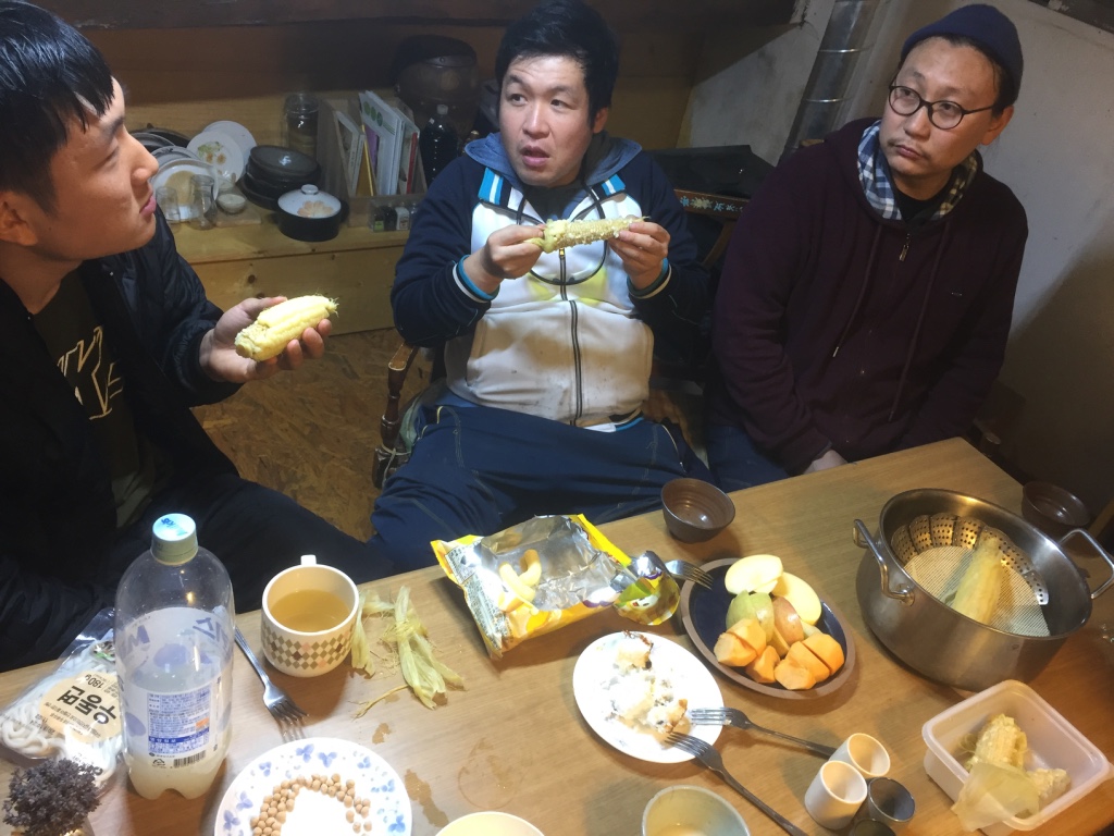 여름에 쪄서 얼려놓은 옥수수를 내놓았습니다.